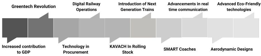 Operations and efficiency are being optimised by Indian Railways as it has adopted digital technologies for its procurement processes, spanning from tender issuance to goods evaluation. This approach is part of a broader strategy focused on digitalisation23, which supports increased indigenisation and strengthens the supply chain for rolling stock production.